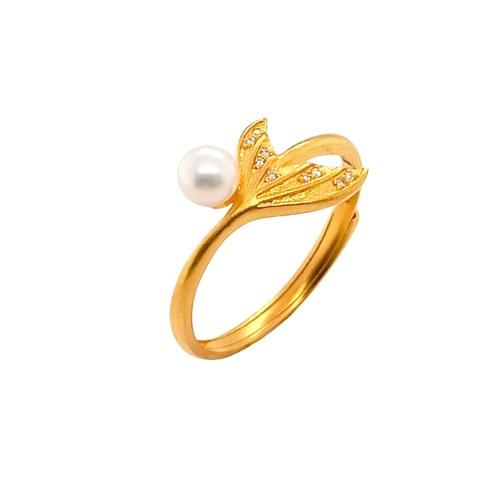 魚尾線條柔和展開,小鑽沿著弧度細緻閃耀,一顆珍珠靜靜點綴其側,增添溫潤氣息與浪漫層次。這款餘生幸福黃金女戒,以甜美中帶設計感的語言,象徵陪伴與承諾,無論日常佩戴或紀念重要時刻,都能讓幸福悄悄綻放。