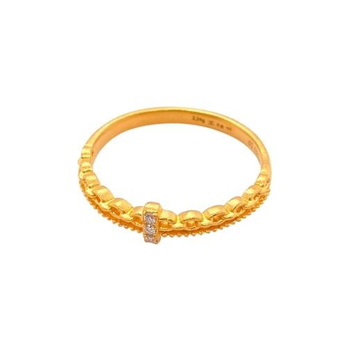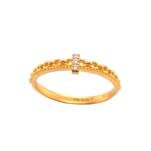三顆鑽石一字排列稱「一直鑽」,象徵財運連續、不間斷地「一直賺」,為日常佩戴帶來亮眼好兆頭。戒圈以細緻蕾絲紋與滾珠工藝交織,讓黃金光澤更顯柔和層次。這款 黃金女戒 不只精緻耐看,也承載招財與好運寓意,適合自戴或作為祝福心意。