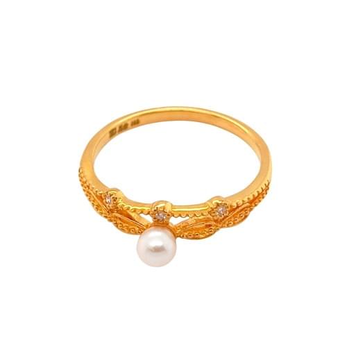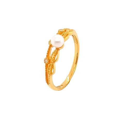 中央珍珠溫潤優雅,旁側蕾絲與精緻雕紋細膩延伸,小鑽點綴光芒,如星影般閃爍於指間,打造甜美又有層次的公主風輪廓。這款 黃金女戒 與 珍珠女戒 結合精緻工藝與浪漫設計,既適合日常佩戴,也能作為特別時刻的心意禮物。