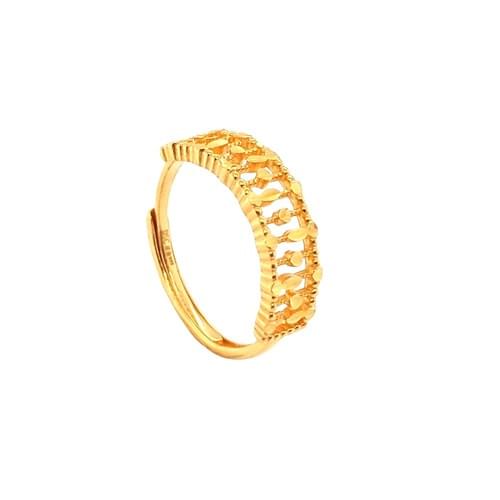 寬面戒身以鏤空金線層層交織,比例俐落、結構清晰,讓金屬質感自然成為焦點。這款 黃金女戒 以設計取勝,不需繁複裝飾,就能展現內斂卻鮮明的個性態度,適合偏愛質感與風格並重的日常佩戴。
