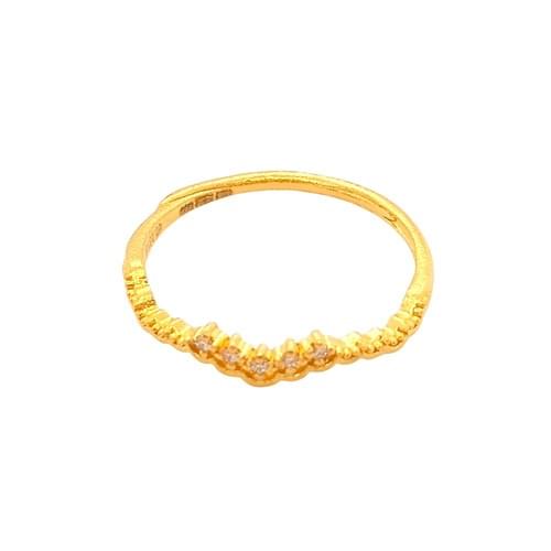 俐落的 V 型輪廓向中央延展,細緻鑲鑽沿線綻放柔亮火彩,拉長指型比例,展現優雅自信。這款 V型鑲鑽黃金女戒 以精準鑲嵌工藝呈現細膩光感,無論單戴或疊搭,都能為日常造型添上一道恰到好處的亮點。